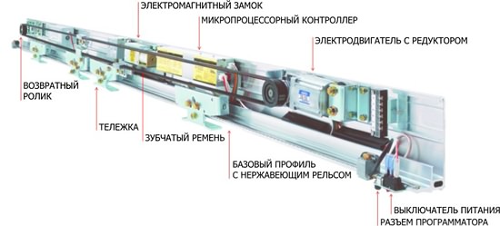 - усиленной конструкции рельса из нержавеющей стали (!!!) и тележек, ролики которых изготавливаются из алюминия, покрытого полиуретаном;